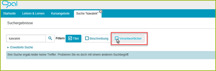 Wichtiger Hinweis: Können Teilnehmer nicht gefunden werden, haben sich diese bisher noch nicht in OPAL angemeldet. Bevor Personen gefunden werden können, ist eine Erstanmeldung erforderlich!